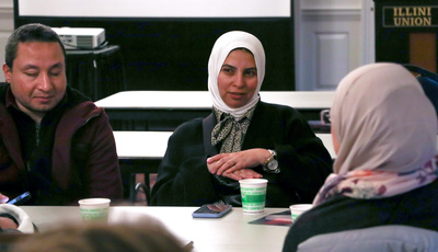 New and pilot disability center directors from Egypt participated in their final break-out session with their mentors during the Amideast Study Tour on Feb. 14 inside the Illini Union.