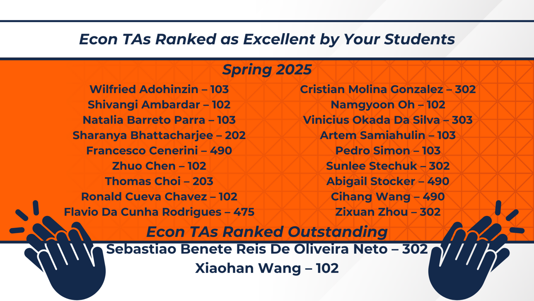 blog posts ECON TAs Spring Aug 29, 2025 11:00 am by Klaus Winthers Share on Facebook Tweet Email Share on Facebook Tweet Email