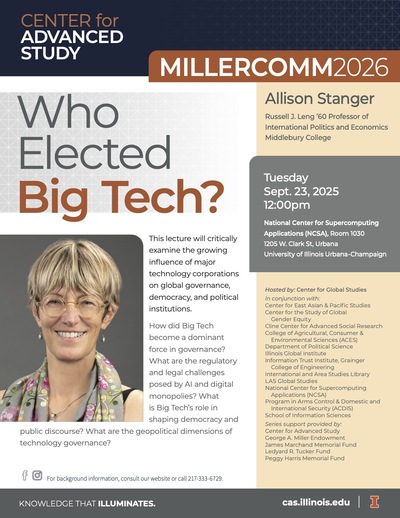 September 23 – MillerComm: Allison Stanger (International Politics and Economics, Middlebury), "Who Elected Big Tech?”