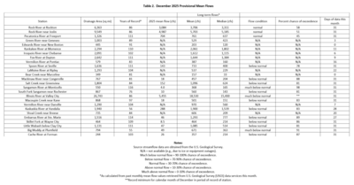 Mean provisional streamflow data was sufficiently limited to preclude estimating an aggregate mean streamflow condition statewide for December. Available monthly mean discharge values in December ranged from much below normal to normal.
