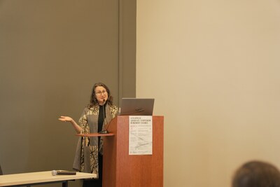 Our second keynote speaker was Dr. Rituparna Roy who talked about the artwork of Debasish Mukherjee in the context of the virtual Kolkata Partition Museum. Her focus on archiving displacement and loss, and taking up a memory project through building a unique virtual museum was inspired by her 2007 visit to Memorial to the Murdered Jews of Berlin. Through a presentation of Mukherjee’s art installations, Roy explored his use of fabrics (the gamcha—an indigenous red and white striped cotton cloth that has been used as a symbol of resistance during the colonial period in India, or later remained as people’s only means of bundling up their essentials as they were forced to migrate during the 1947 partition), paintings that embody Mukerjee’s mother’s memories, as well as architectures and paintings that serve as a reminder of his generational loss. Rituparna Roy is Initiator of the Kolkata Partition Museum Project that aims to establish a Partition Museum in Kolkata, focusing on the Bengal experience. An alumna of Presidency College and Calcutta University, she has taught at several institutions in Kolkata, Leiden, and The Hague. She is the author of South Asian Partition Fiction in English: From Khushwant Singh to Amitav Ghosh (Amsterdam University Press: 2010) & co-editor of the ICAS Volume, Writing India Anew: Indian English Fiction 2000-2010 (Amsterdam University Press: 2013). Her latest book is a co-edited volume of essays, The Long History of Partition in Bengal: Event, Memory, Representations (Routledge: 2024).