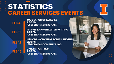 Career Workshop: 2/25 Feb 3, 2026 2:15 pm Undergraduate Research Feb 3, 2026 10:00 am Hire Illini Dec 10, 2025 3:30 pm Stat Faculty Directory Aug 29, 2024 9:15 am Advising Queue Mar 30, 2023 4:30 pm