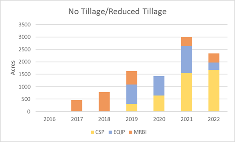 Since 2015, the partnership has invested more than $2.8 million in conservation practices through RCPP and MRBI funding. This amount was spread out over 100 contracts and improved management on 31,000 acres.