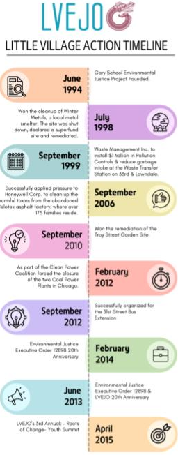 - The Little Village Environmental Justice Organization is one of five neighborhood-based groups that comprise the Chicago Environmental Justice Network.